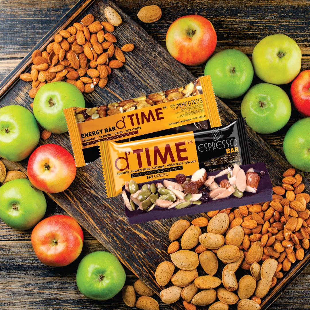 Energize your day with d'TIME: Indulge in the vitality of power-packed energy bars and our petite healthy snacks for a delightful and nourishing boost!