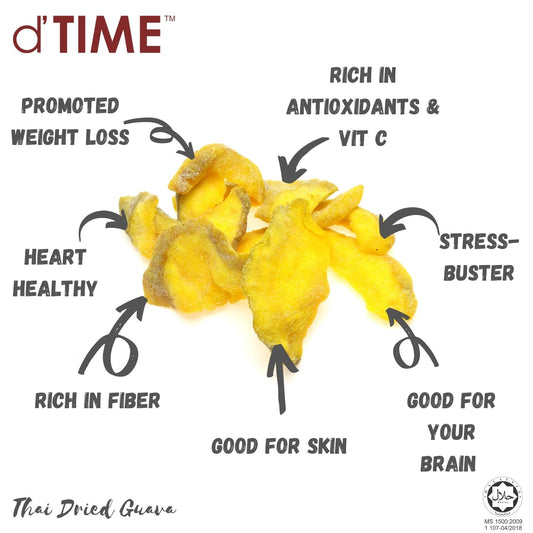 d'TIME Kindland Dried Guava (500g,1Kg), Bulk Pack Dried Guava, Dried Fruit, Guava, Vegan, Natural