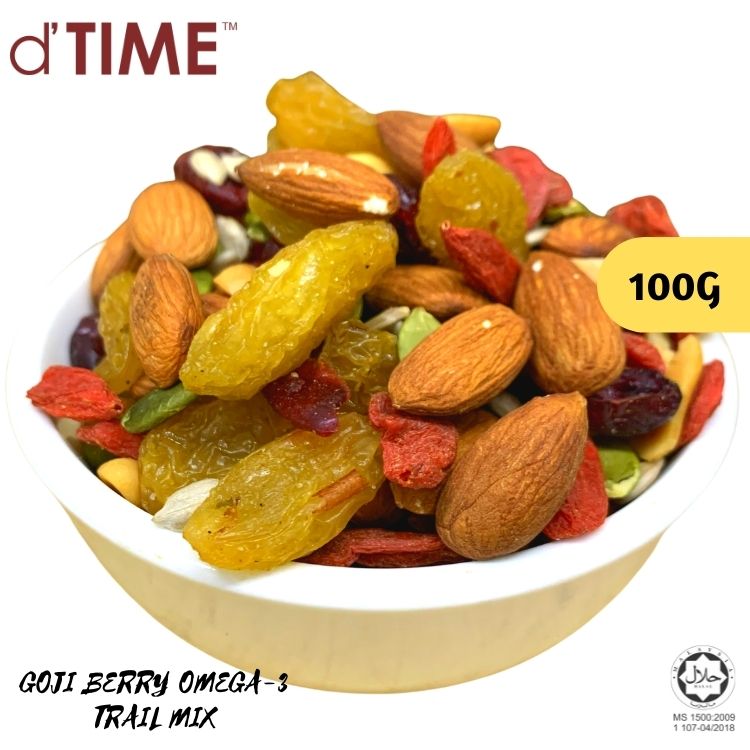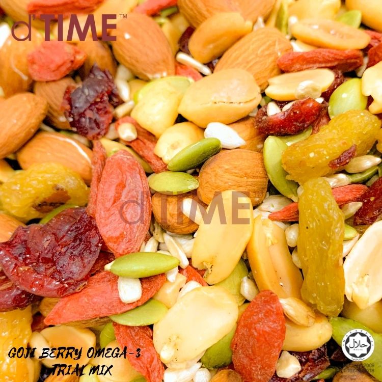 Ingredients: Almonds, Omega-3 Fortified Cranberries, Pumpkin Seed, Goji Berry, Sunflower Seeds, Black Raisin & USA Jumbo Raisin
